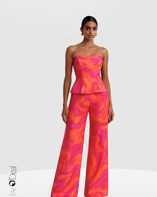 Ensemble DAME Pantalon et bustier stretch multicolore
